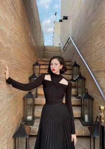 Áo Đầm Len cao cấp / xanh Đen / freesize